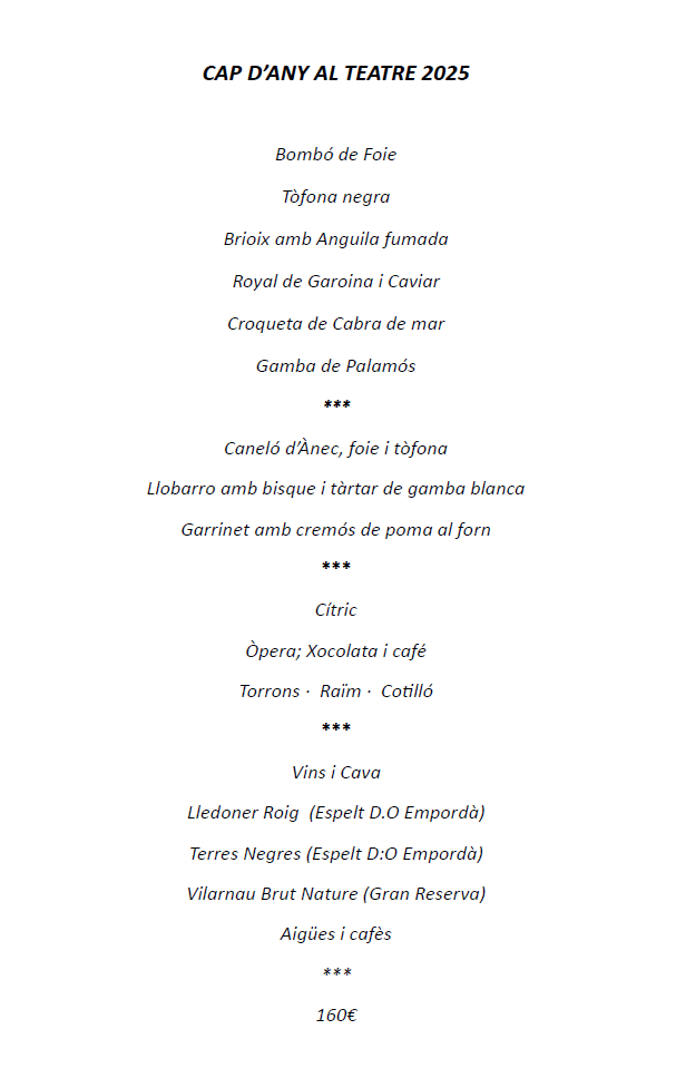 La proposta culinària del Restaurant del Teatre es basa en una cuina d’arrels empordaneses, la qual ha sabut transformar, respectant la memòria gustativa de receptes tradicionals, en proposicions subtils, fresques i digestives. Que irradien vida, i desprenen aromes de dies de sol i Tramuntana.